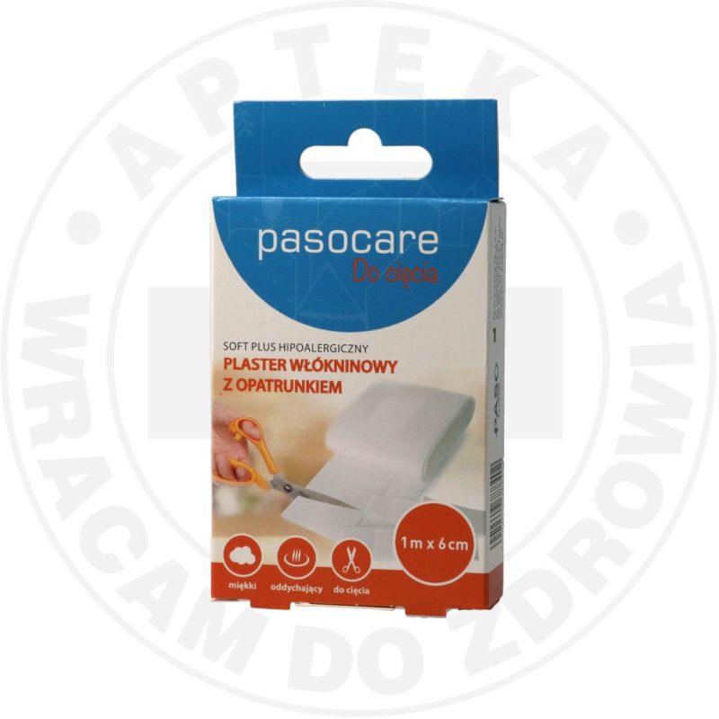 PASOCARE SOFT PLUS HIPOALERGICZNY PLASTER WŁÓKNINOWY Z OPATRUNKIEM 1m x 6cm