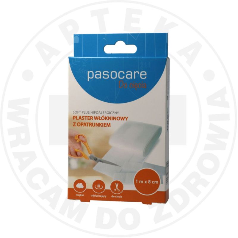 PASOCARE SOFT PLUS HIPOALERGICZNY PLASTER WŁÓKNINOWY Z OPATRUNKIEM 1m x 8cm